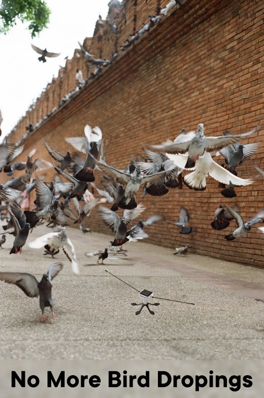 Schützen Sie Ihre Balkon oder Garten vor unerwünschten Besuchern und deren Hinterlassenschaften mit der solarbetriebenen Vogelscheuche BirdBoggle. Mit BirdBoggle als Taubenabwehrsystem können Sie Ihren Balkon oder Garten wieder ohne täglichen Ärger nutzen. Durch die unregelmäßige Bewegungen von BirdBoggle setzen die Fluchtreflexe der Vögel ein und sie suchen sich lieber ein ruhigeres Plätzchen zum Rasten. Dadurch, dass BirdBoggle nicht kontinuierlich sondern nur einmal pro Minute dreht, können sich die Vögel nicht daran gewöhnen und werden dauerhaft vertrieben. BirdBoggle macht dies ohne störende Geräusche und bei jedem Wetter.